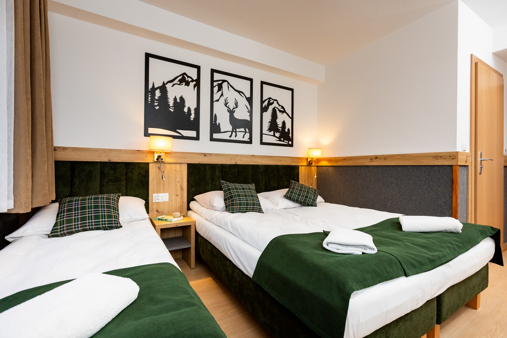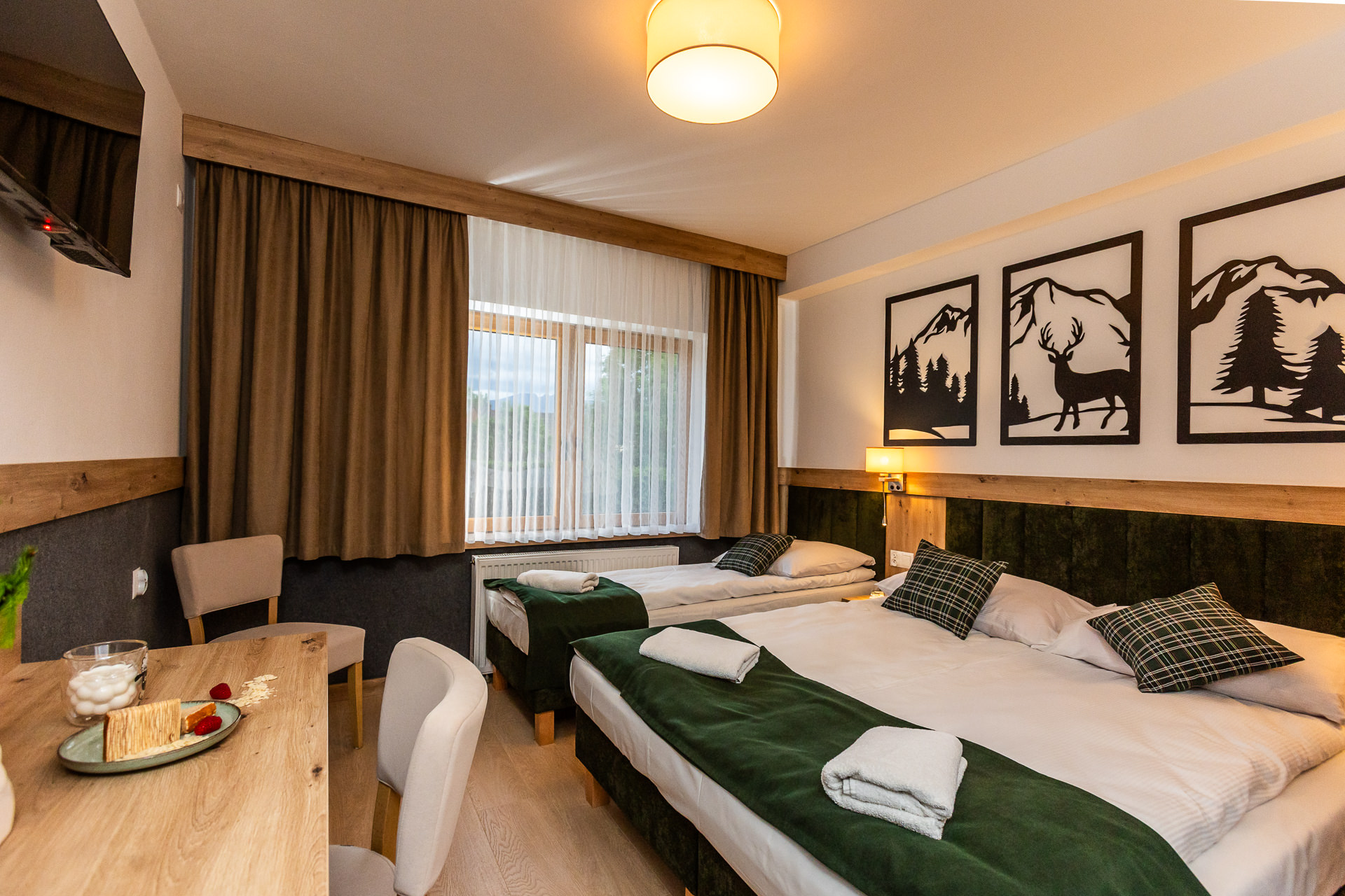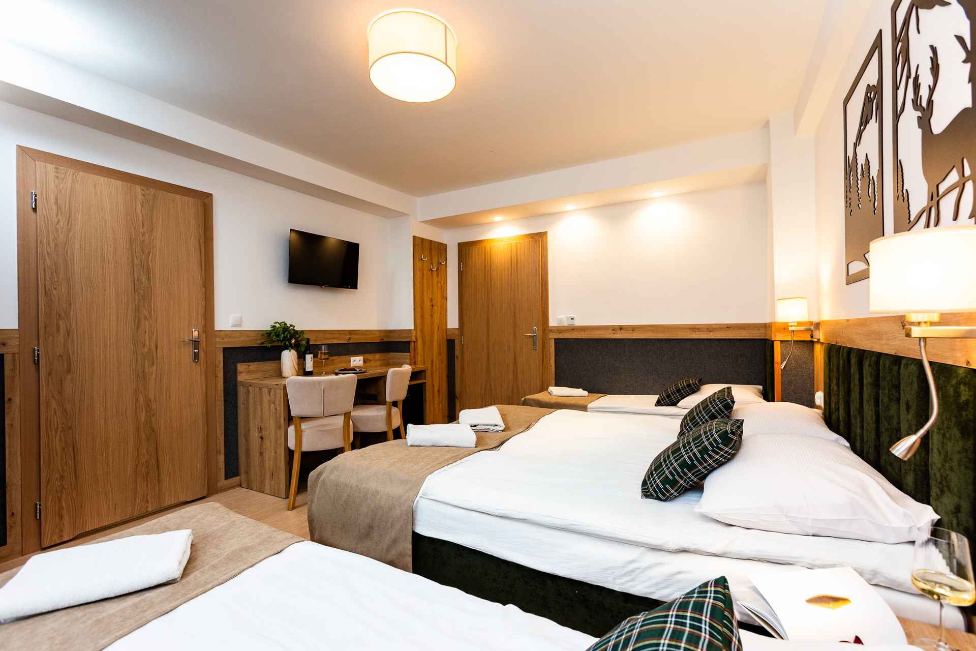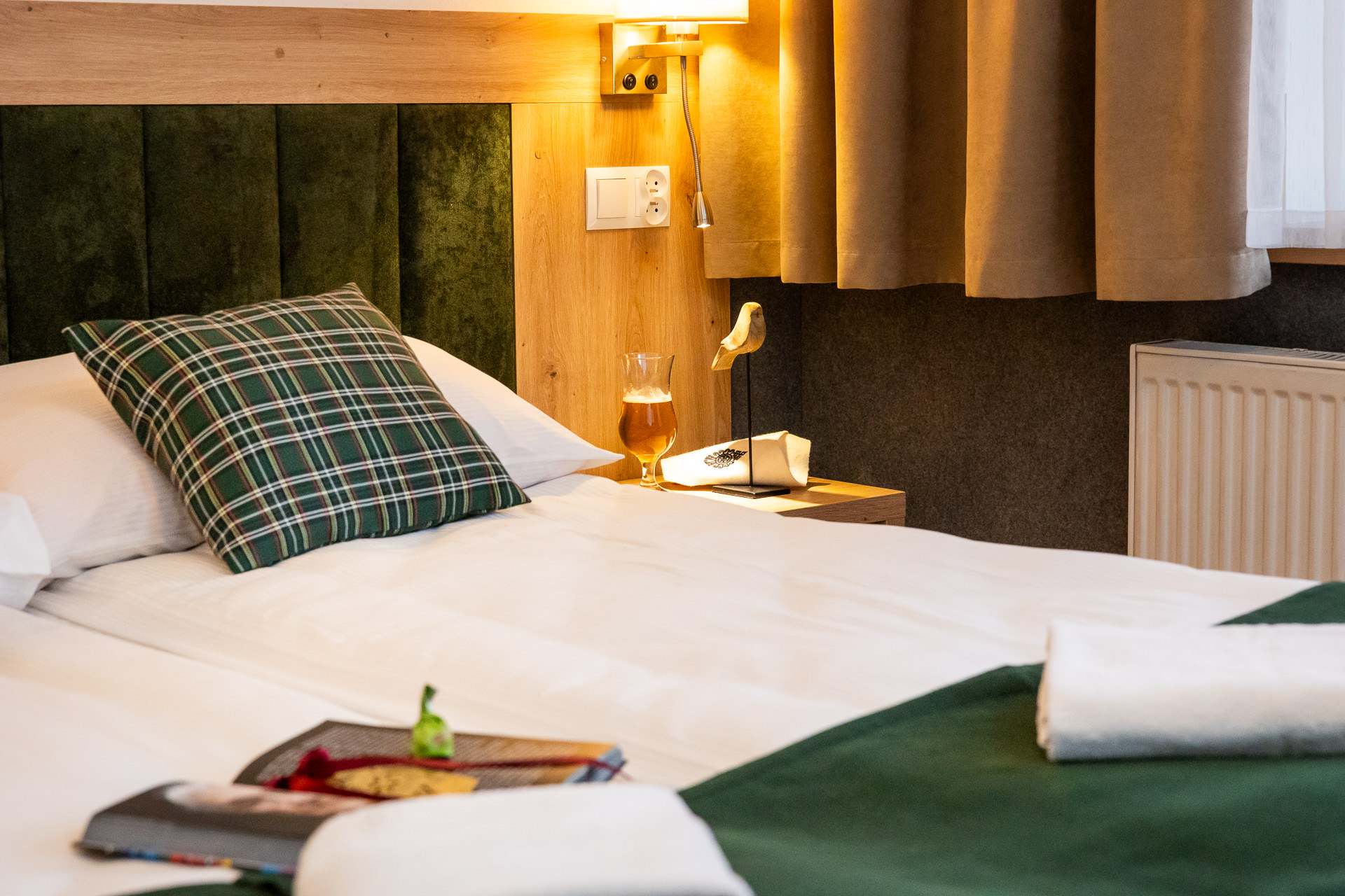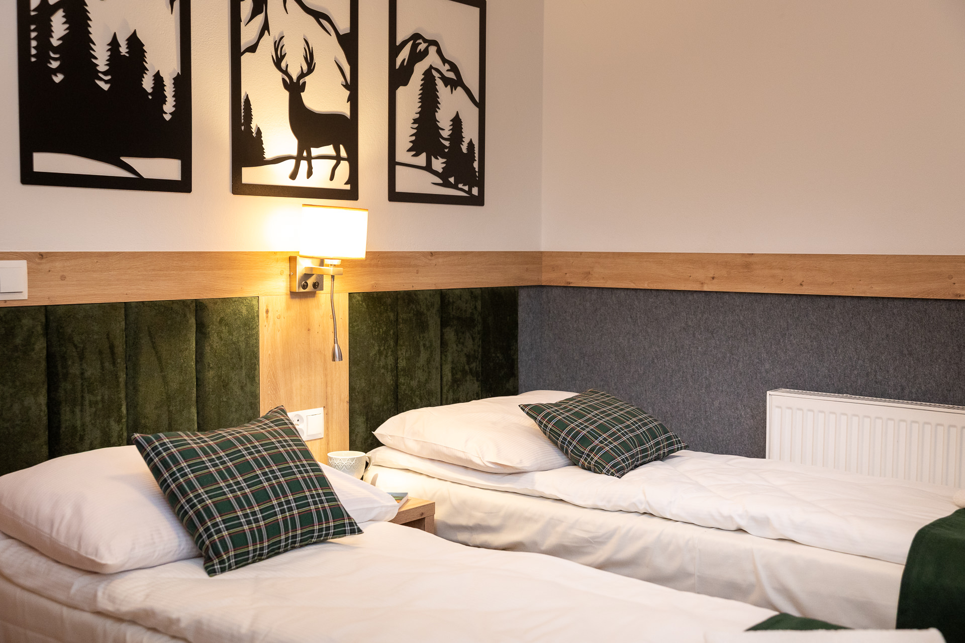 Z przyjemnością oferujemy naszym Gościom komfortowe pokoje 1-, 2-, 3- oraz 4-osobowe, idealne zarówno dla osób podróżujących indywidualnie, jak i rodzin czy grup przyjaciół. Każdy pokój wyposażony jest w prywatną łazienkę wykończoną w wysokim standardzie, a także niezbędne udogodnienia zapewniające wygodny i spokojny pobyt. Wnętrza zostały zaprojektowane z myślą o funkcjonalności i estetyce, by stworzyć przestrzeń sprzyjającą relaksowi. Nasz pomocny i życzliwy personel jest zawsze do dyspozycji Gości, dbając o to, aby pobyt w Bystrym Potoku był komfortowy i wart powrotu.