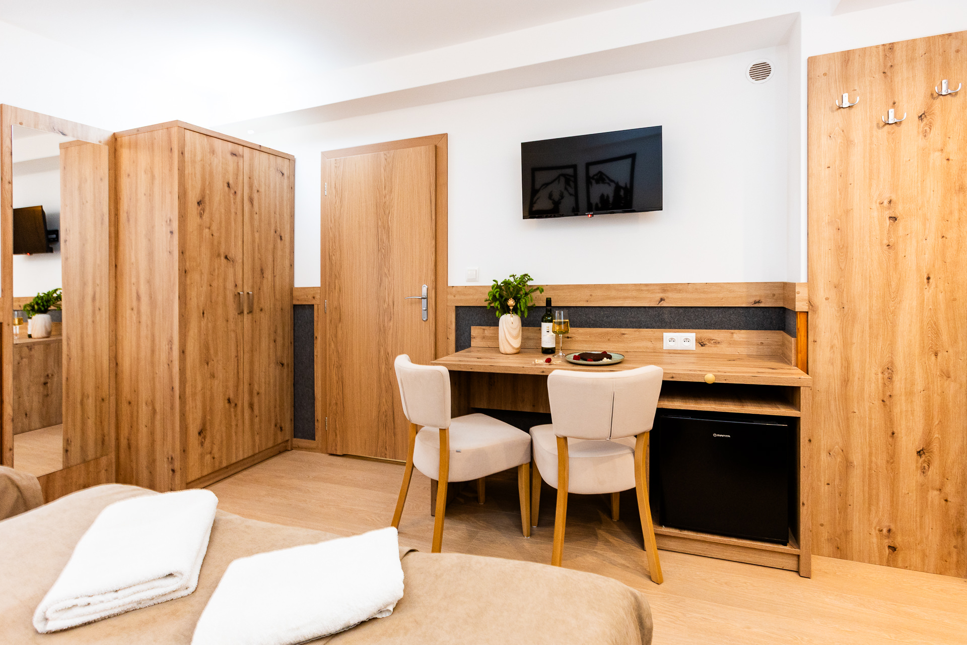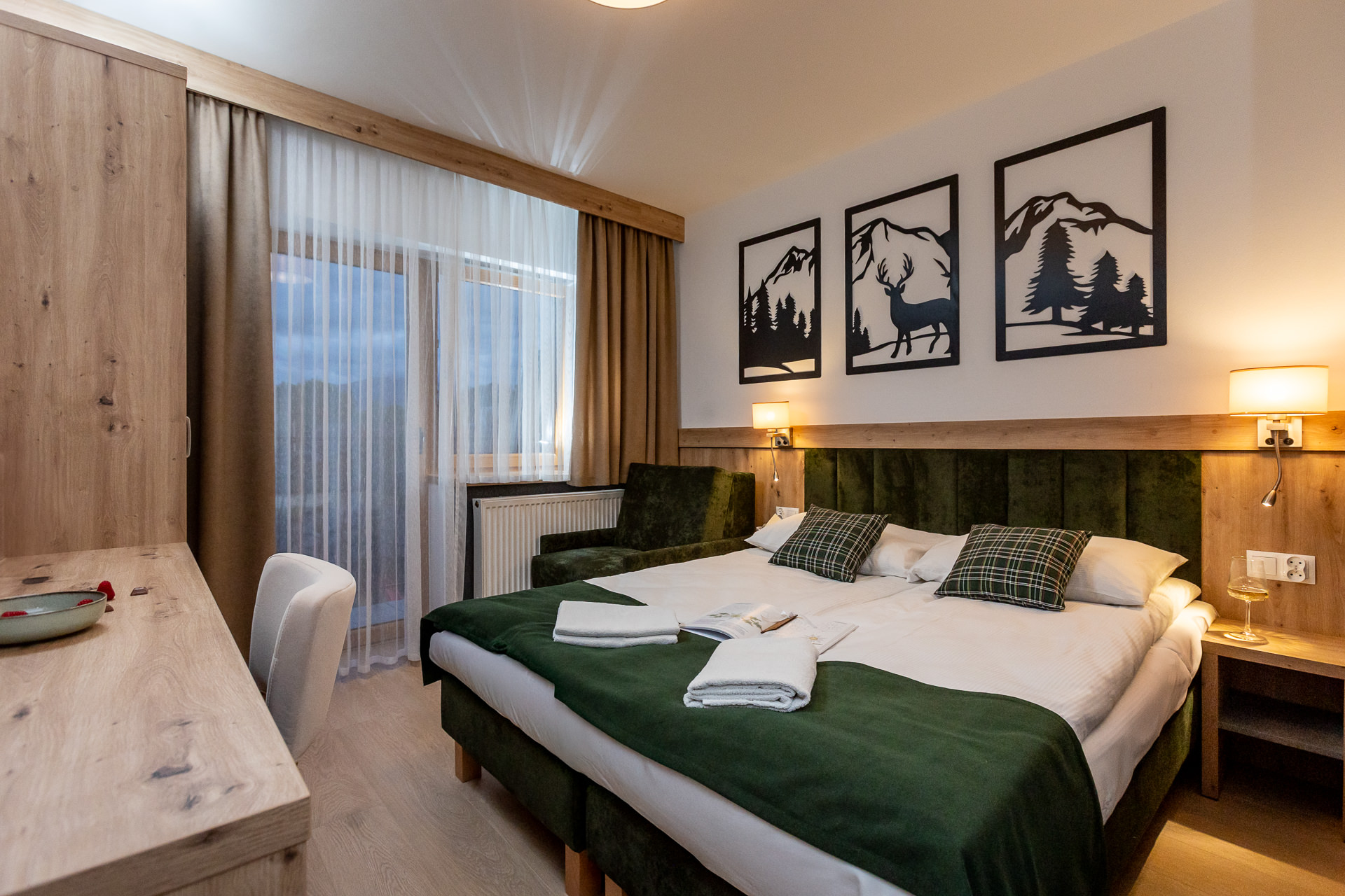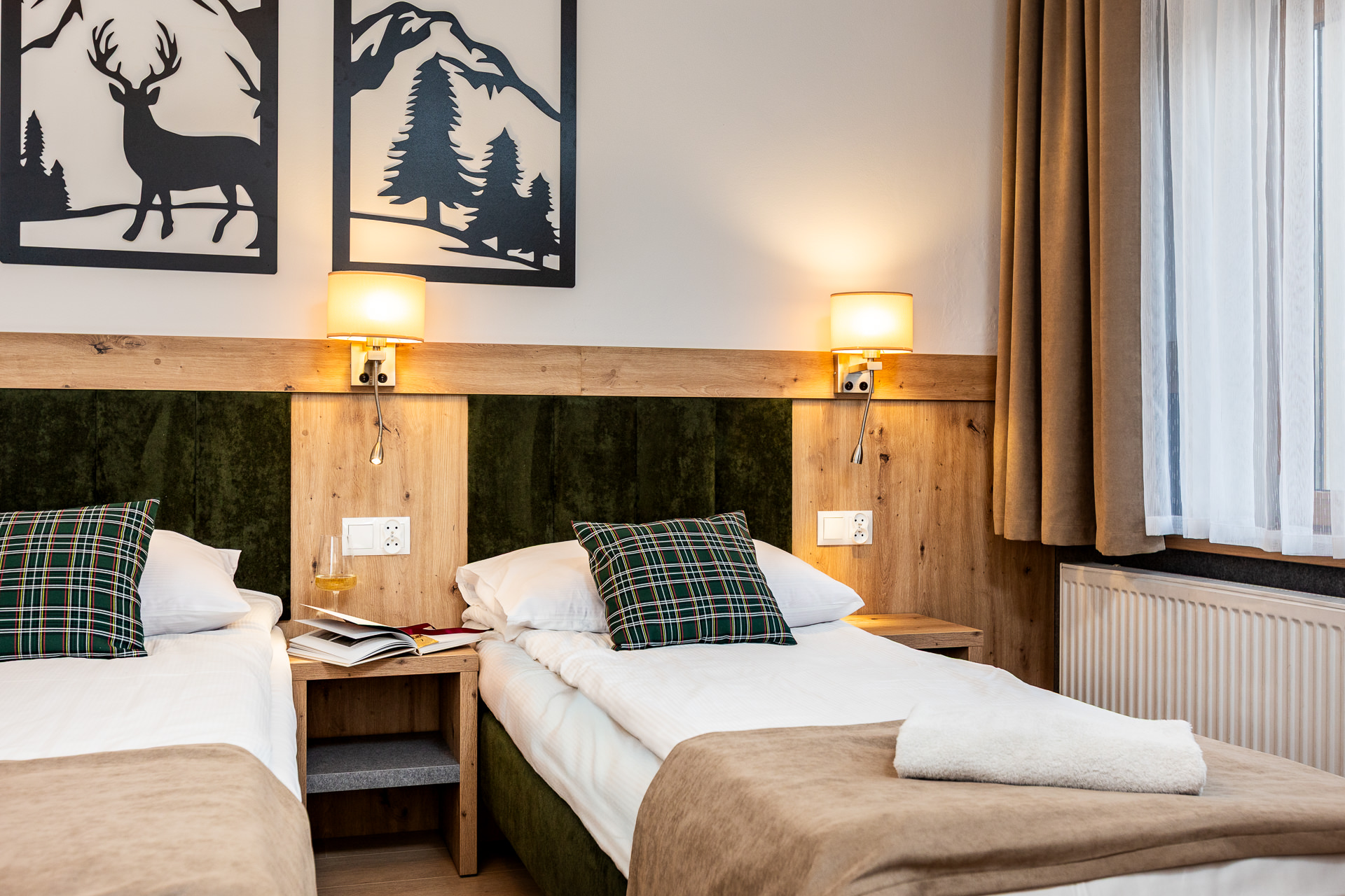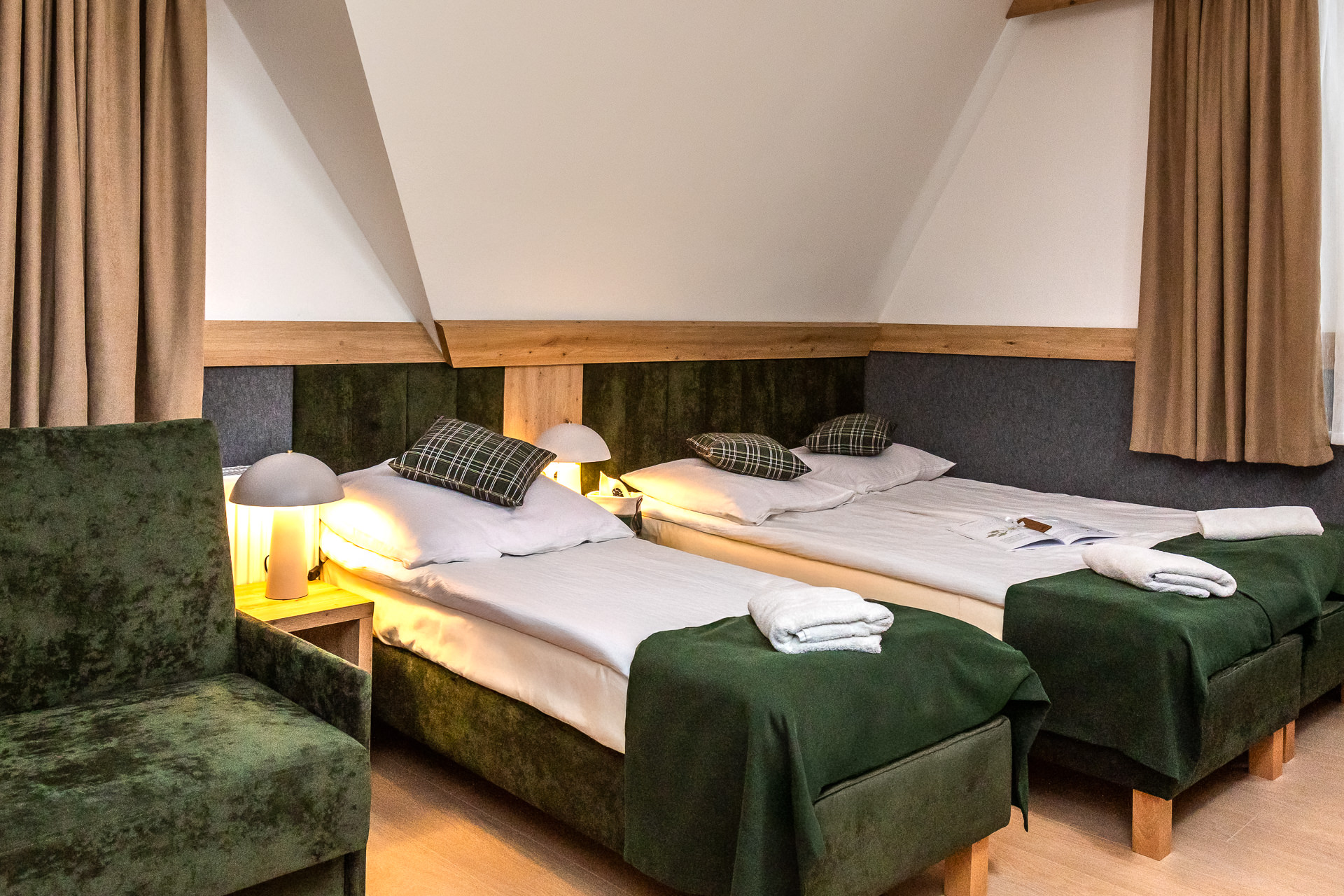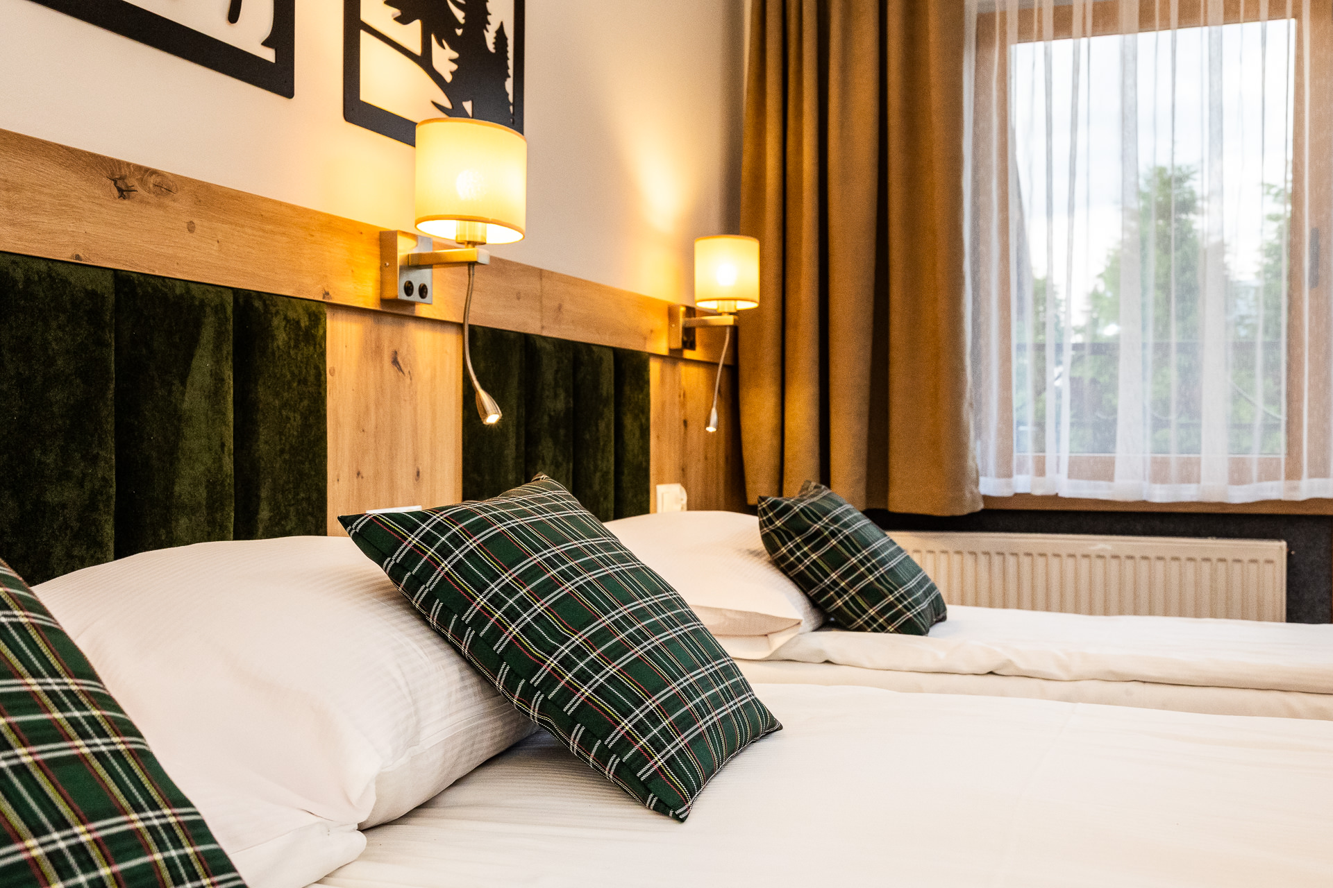 Z przyjemnością oferujemy naszym Gościom komfortowe pokoje 1-, 2-, 3- oraz 4-osobowe, idealne zarówno dla osób podróżujących indywidualnie, jak i rodzin czy grup przyjaciół. Każdy pokój wyposażony jest w prywatną łazienkę wykończoną w wysokim standardzie, a także niezbędne udogodnienia zapewniające wygodny i spokojny pobyt. Wnętrza zostały zaprojektowane z myślą o funkcjonalności i estetyce, by stworzyć przestrzeń sprzyjającą relaksowi. Nasz pomocny i życzliwy personel jest zawsze do dyspozycji Gości, dbając o to, aby pobyt w Bystrym Potoku był komfortowy i wart powrotu.