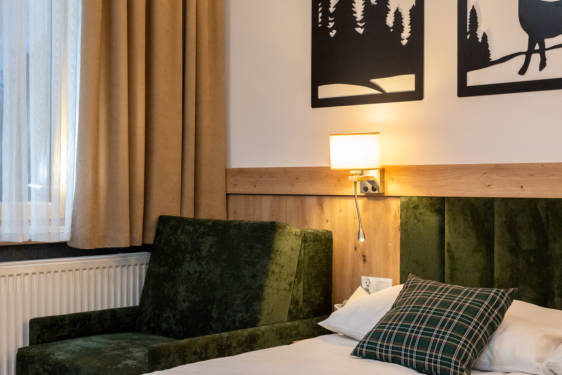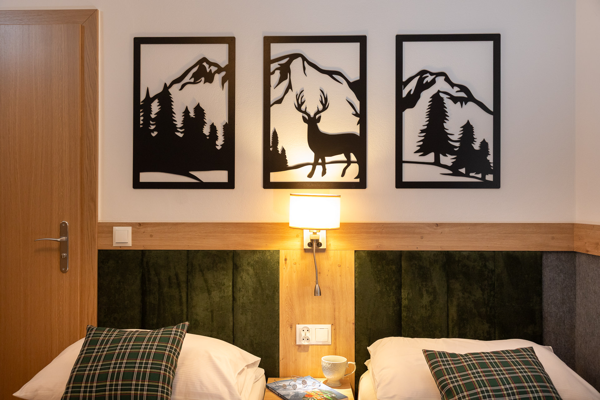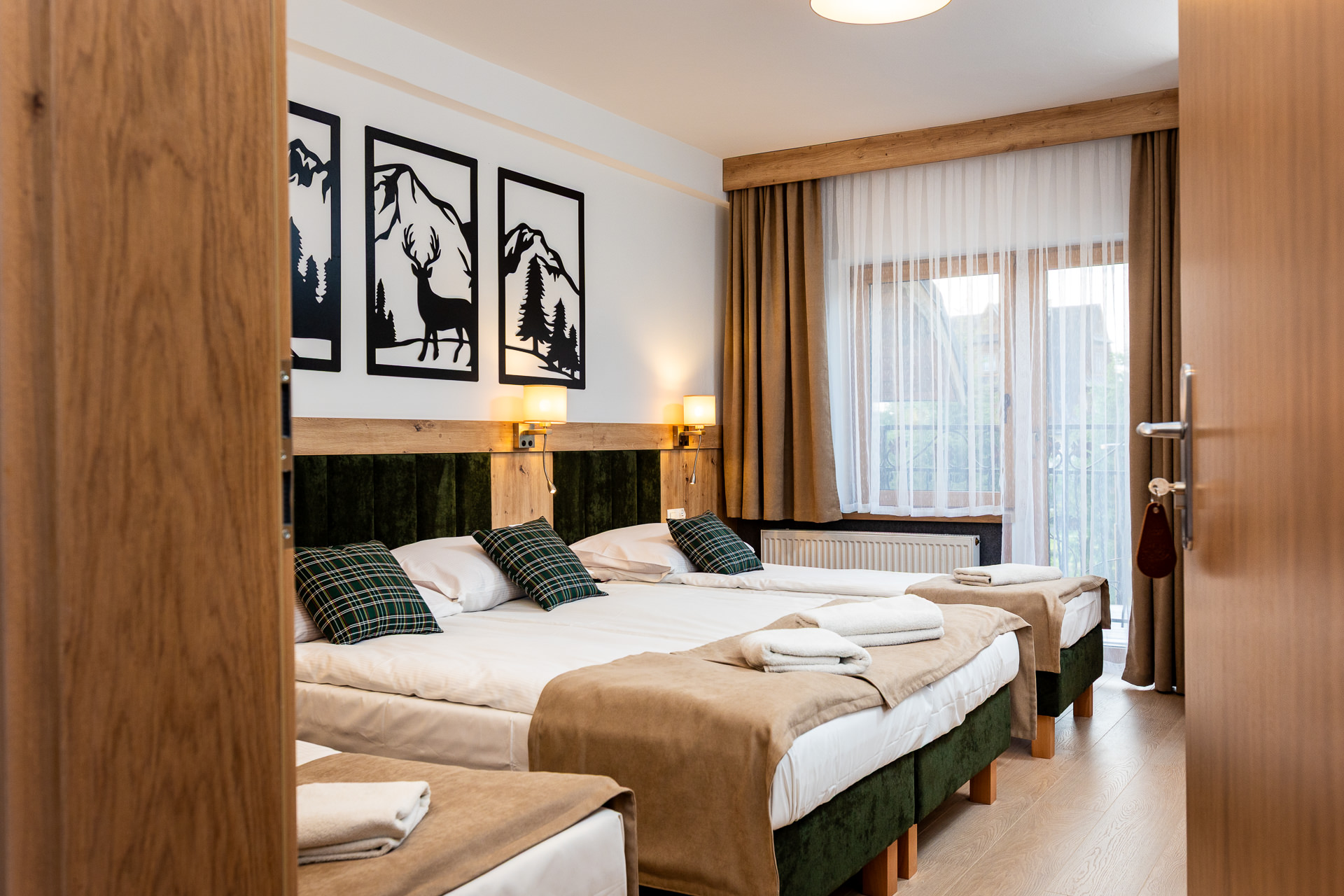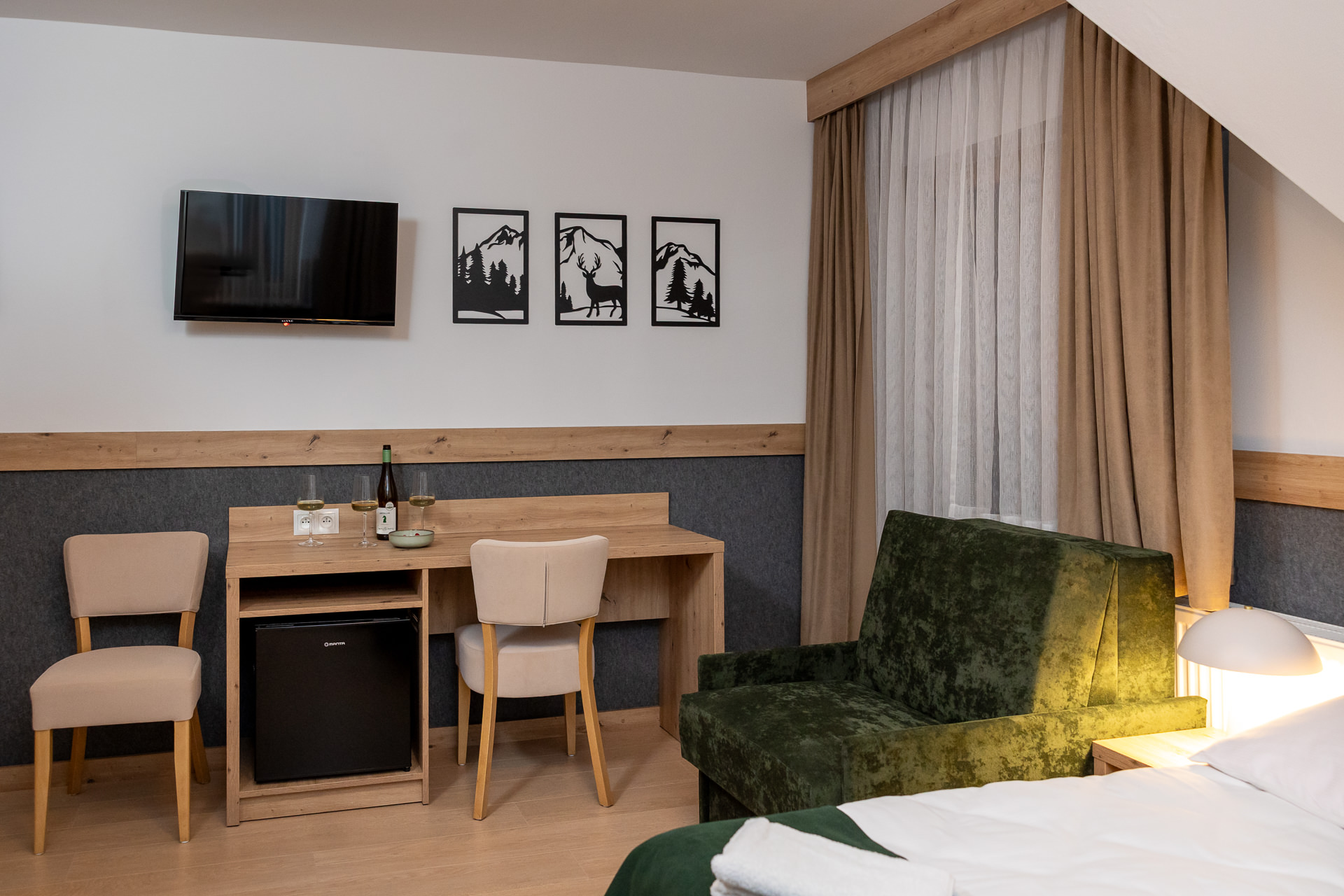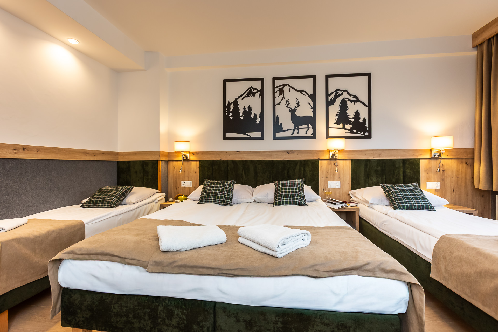 Z przyjemnością oferujemy naszym Gościom komfortowe pokoje 1-, 2-, 3- oraz 4-osobowe, idealne zarówno dla osób podróżujących indywidualnie, jak i rodzin czy grup przyjaciół. Każdy pokój wyposażony jest w prywatną łazienkę wykończoną w wysokim standardzie, a także niezbędne udogodnienia zapewniające wygodny i spokojny pobyt. Wnętrza zostały zaprojektowane z myślą o funkcjonalności i estetyce, by stworzyć przestrzeń sprzyjającą relaksowi. Nasz pomocny i życzliwy personel jest zawsze do dyspozycji Gości, dbając o to, aby pobyt w Bystrym Potoku był komfortowy i wart powrotu.