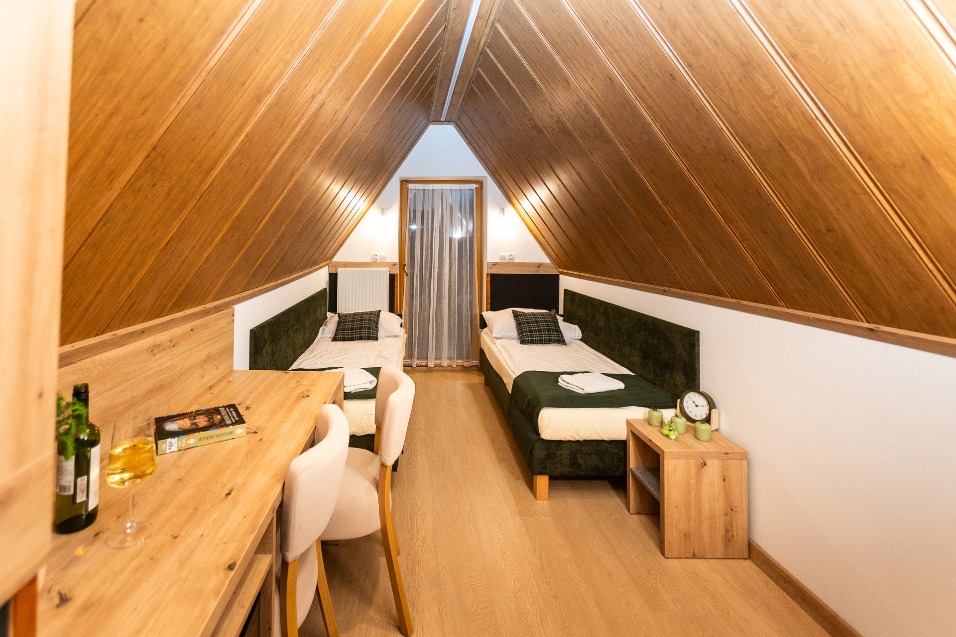 Niezależnie od tego, czy podróżujesz sam, z rodziną, czy w większej grupie – Willa Bystry Potok oferuje noclegi dopasowane do Twoich potrzeb. Do dyspozycji naszych Gości oddajemy komfortowe pokoje 1-, 2-, 3- i 4-osobowe, idealne zarówno na krótki wypoczynek, jak i dłuższy pobyt w górach. Każdy pokój łączy w sobie funkcjonalność, wygodę i przytulny klimat, dzięki czemu zapewni relaks po dniu pełnym atrakcji. Bez względu na to, czego szukasz – spokojnej przestrzeni dla siebie, komfortu dla rodziny czy praktycznego rozwiązania dla grup – znajdziesz to właśnie u nas.